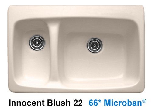 CorStone 20422 Innocent Blush Barrington Barrington Double Bowl Hi-Lo Self Rim Kitchen Sink, Small B