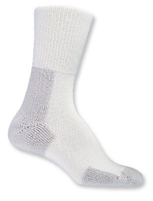 About Thorlop/pThorlo, the originator of the activity-specific sock, is a family-owned company that designs and manufactures sock products for everything from hiking to tennis to hunting. Every pair of Thorlo's socks--from original concept to finished product--is made in North Carolina. Thorlo goes to great lengths to ensure that table align="right" width="144" cellpadding="5"TRTDimg border="2" src="http://images.amazon.com/images/G/01/stores/sport-goods/detailpageimages/thorlologoa.jpg"/TD/TRTRTDBISMALL/SMALL/I/B/TDp/TR/tableit uses only recycled or recyclable paper in its packaging.p The company provides foot health support through innovative product design. Thorlo recently introduced their "Levels of Protection" system for some of their products to make it easier for the active individual to choose the product that best suits their needs. With an easy 3-2-1 system, consumers can choose the appropriate protection based on the intensity of their activity and their chosen footwear.pp/pProduct Descriptionp/pGo the extra distance on all sorts of terrains with the Thorlo? thick-cushion running crew sock. It's crafted using the moisture-wicking THOR-LON? fabric that draws sweat away from the skin to keep your feet comfortable and dry.
